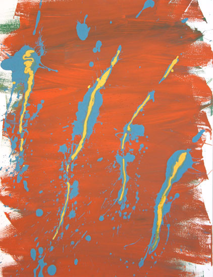 Dick Waller started painting in 1974, originally as a release from the strict regimen of performing as principal clarinetist of the Cincinnati Symphony Orchestra. As his passion for the art grew, he developed a style he calls free association painting. All of his pieces bear the title “Contrasts,” inspired by the wonderful Bartok trio for clarinet, violin and piano. It both describes his contrasting styles of painting as well as the contrast of colors he uses. In a way, the Contrast numbers should be considered opus numbers; most works of composers are untitled symphonies or sonatas with an opus number, which gives the listener the freedom to interpret the music with his or her own ear. Similarly, by leaving the paintings without a title, it is his desire that the viewer has the freedom to interpret each piece in their own way.