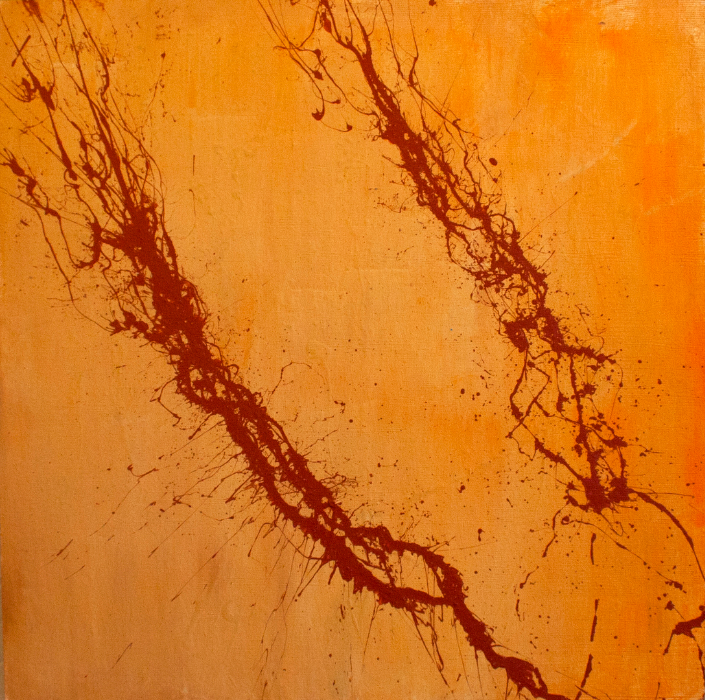 My style of painting is completely intuitive – I like to call it “Free Association Art.” This involves selecting harmonious color combinations and applying them to a canvas or piece of wood on the floor. I add layer of paint until the work feels finished – a process that can take minutes, hours or days. The most important moment is to know when to stop.