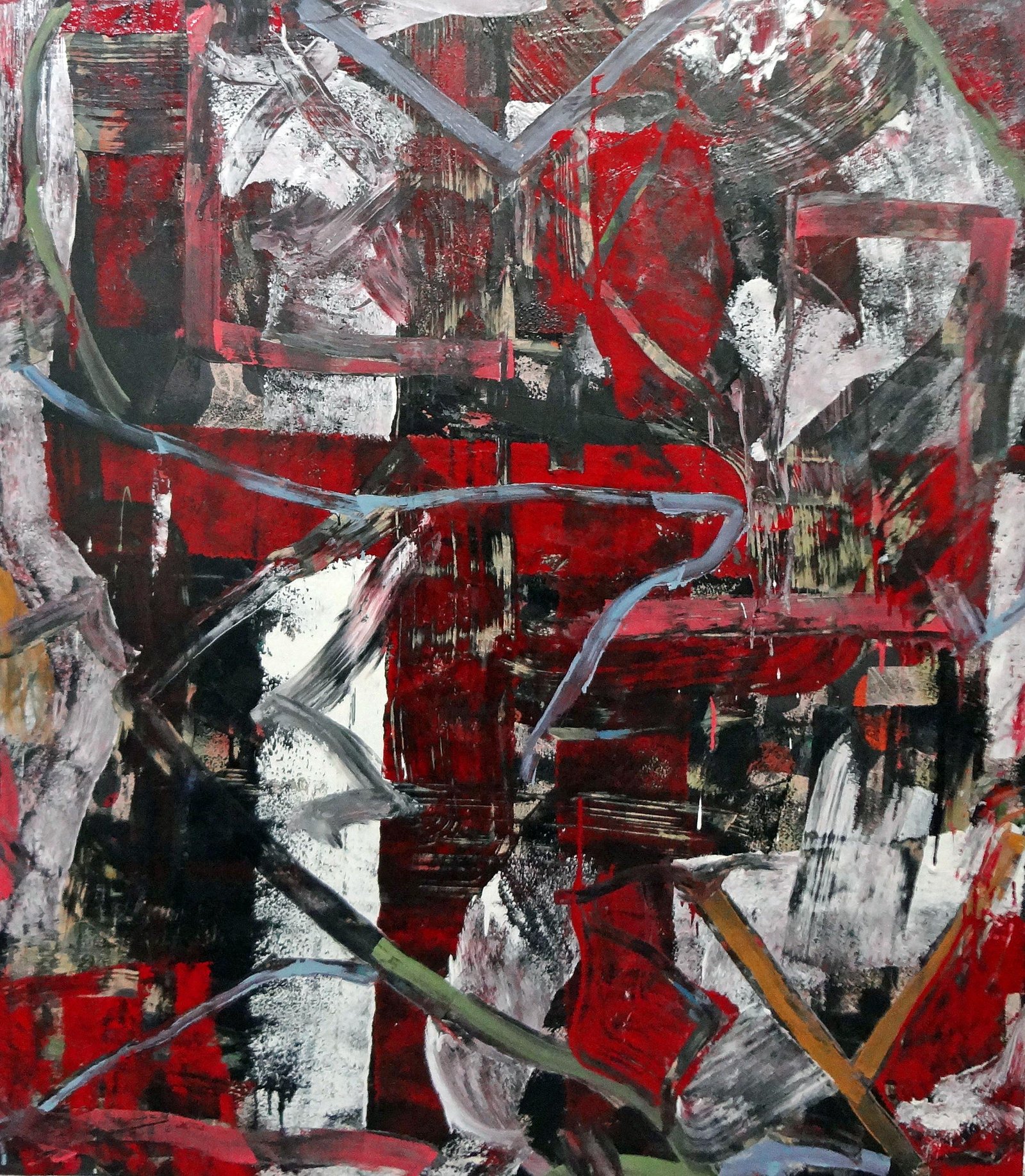 Matt Dibble: Up on the Roof By Douglas Max Utter www.douglasutter.com A paintings subject matter and formal qualities lodge in the reasonable parts of the brain, but more subtle surface features also exude significance, impressing the subconscious. Meaning derives, also, from the motions of repeated gestures or marks, and the way that successive layers of substance and attention suggest a play of dreamlike equivalences. Extremes of opacity and transparency link up through a range of visual clues, and for a moment the eye is surprised and the world is refreshed. Matt Dibble is an American artist who has installed and maintained roofs for several decades. Because he is a very good painter, his day job matters as everything matters, if life is to be realized as an aesthetic whole. It may well be that Dibbles different kinds of labor overlap, and in some sense complete one other. For one thing, a roof must accommodate stress and changing needs, so it encodes many kinds of knowledge -- an understanding of seasons and materials, of comfort and security and needs of the body and mind. Then there is the strangeness of roofing, which parallels the oddness of painting. To make a work that resists the changing microclimates of mind and spirit, an artist must enter his own memory and senses from a different angle, climb up and pry parts away, repair and recover the gaps between things. He must balance and risk, and in the end it may happen that he sees his surroundings from a surprising, slightly inhuman angle. Dibble divides his efforts even further; he produces two kinds of painting. His brushy abstract gestures rush into the paint like a gust of wind. Sometimes they lose themselves in explosions of color and texture, but more often there is a solution to the chaos a sense of a new creative order hanging like smoke over shattered visions. In another mood, Dibble also invents calmly restrained, transparent-seeming works. In these the spare outlines of mysterious figures float in a monochromatic dimension. Around them are blueprint-like depictions of utilitarian objects and generic, domestic rooms. The painter shows us an arch, a filing cabinet, an air compressor, and next to them hybrid creatures that might have been borrowed from a medieval bestiary a minotaurs cousin, a sort of selkie, and others. These characters seem emptied of their stories and therefore toothless, yet a flickering in the background, like distant lightening, suggests there is meaning, and power, here also. Embedded in the mundane circuitry of everyday understanding, the energies of myth persist. Thus Dibble empties and fills his canvases, revealing the joists of older worlds, or plumbing and modeling the thick, brief, worldly flesh that paint can so vividly evoke. His more overtly expressive works are doubly rooted in a passion for material experience, and in art history. He eulogizes, and exercises, and exorcizes the dry sinews and still vital spirits of Willem DeKooning, Arshile Gorky, and other mid twentieth century artists, often finding brand new energies. The schematic paintings, on the other hand, visit the design componants, the code, of an older world, like fragments of the hidden script that underwrite each human mind. Together Dibble seemingly opposed bodies of work dealing with the thickness of incarnation, or the limpid purity of geometry and myth, add up to a vision seen from a high and unusual place. Few painters have so broad or sharp or strange a view.